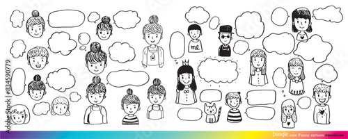 cute doodle cartoon face vector people,Faces of children,Cute cartoon boys and girls,Cute vector speech bubble colorful set