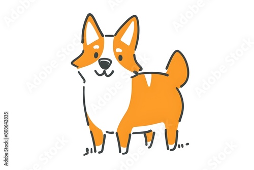 Cute Doodle of a Happy Corgi Dog Character in Simple Shapes and Bold Lines on a White Background