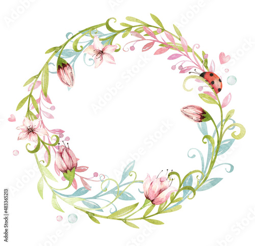 Cute Fairy character watercolor illustration on white background. Magic fantasy cartoon pink fairytale design. Baby girl birthday