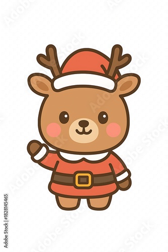 Cute funny cartoon reindeer pet wearing a Santa hat isolated on white for a Christmas holiday illustration