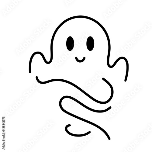 Cute ghost character in single line outline vector style