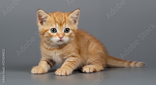 Cute Ginger Kitten Posing on Gray Background Looking at Camera