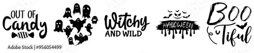 Cute Halloween Design Bundle Hand Lettering, Calligraphy Collection Vector Illustration for Holiday Cards, Banner, Advertising