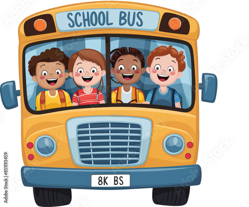 Cute happy School bus cartoon with children character on white background