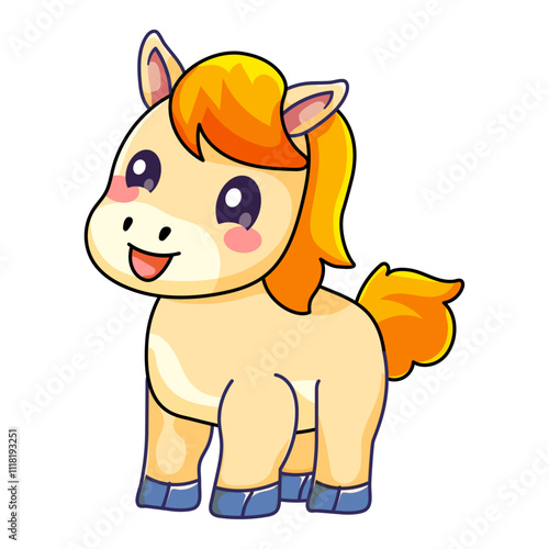 Cute Horse Cartoon Kawaii Sticker. Character Vector Illustration