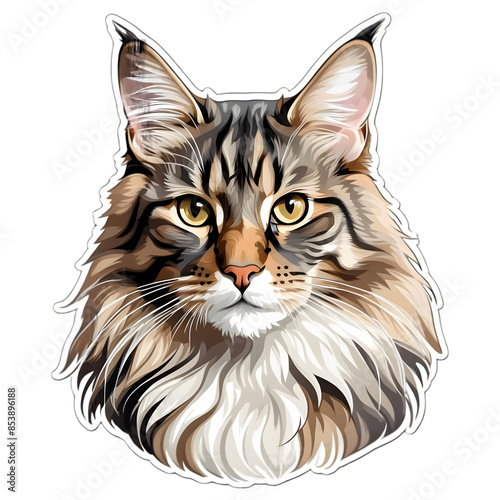 Cute main coon cat sticker, clipart, background