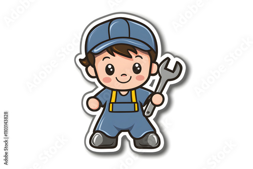 Cute Mechanic Vector Illustration Sticker Design