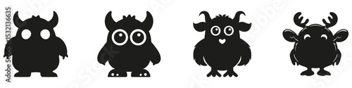 Cute Monster Silhouettes Collection. Children's Game And Halloween Decoration Icons. Creative And Playful Character Set. Isolated Vector Illustration