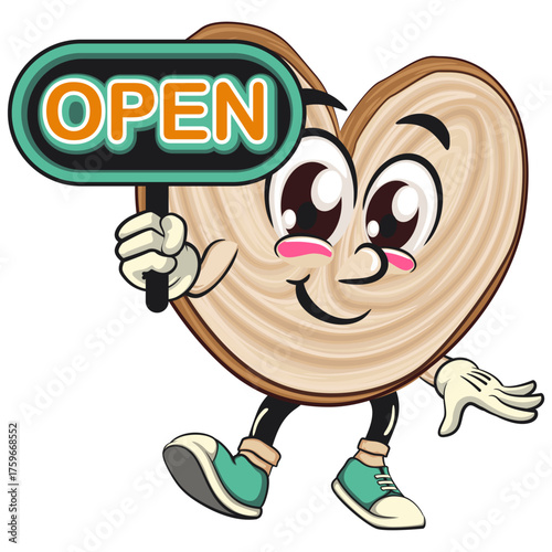 cute palmier cookie mascot cartoon vector illustration isolated showing a sign that says open, work of hand drawn