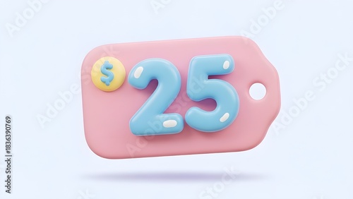 Cute Pastel 3D Price Tag with Rounded Corners and Playful Bubble Design