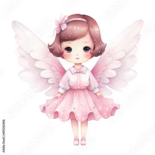Cute Pink Baby Fairy Watercolor Clipart Illustration