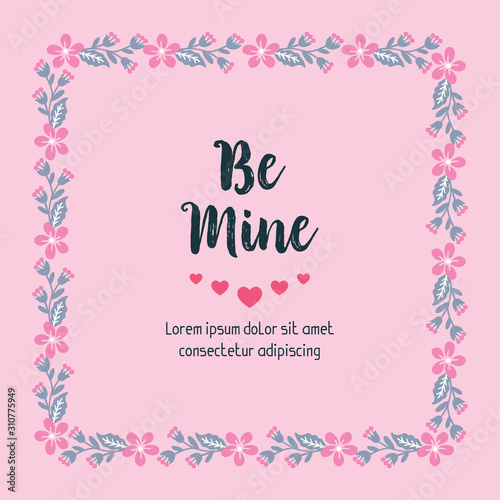 Cute pink background, with floral frame, for card decoration be mine. Vector