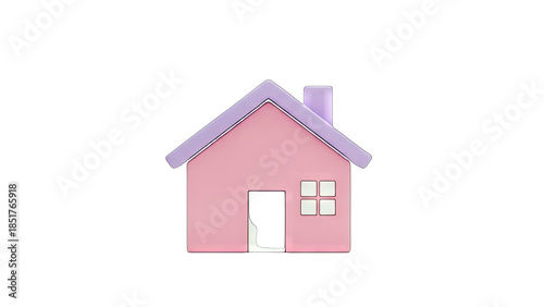 Cute Pink House Isolated on White Background