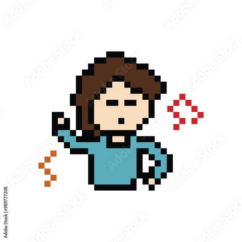 Cute pixel cartoon 8bit character man exercises training dance lifestyle music decoration life style 8 bit male boy dance with music game fitness isolated PNG vector.