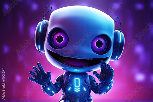 Cute purple robot on blue background.