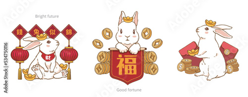 Cute rabbit with The red spring couplets say blessings and Lucky tiger welcome the spring to celebrate Chinese New Year and lunar New Year