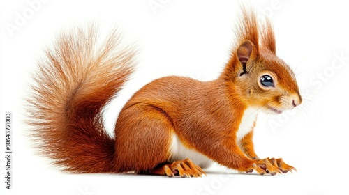 Cute Red Squirrel with Fluffy Tail in Natural Pose