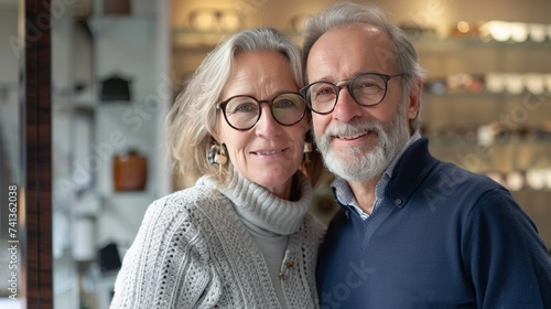 cute retired couple wearing glasses in an optical store
