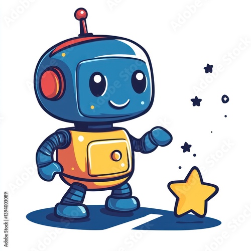 Cute robot collecting a star in space