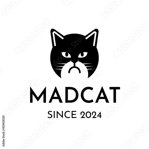 Cute serious mad cat face in simple minimalist elegant style for luxury fashion perfume brand logo icon
