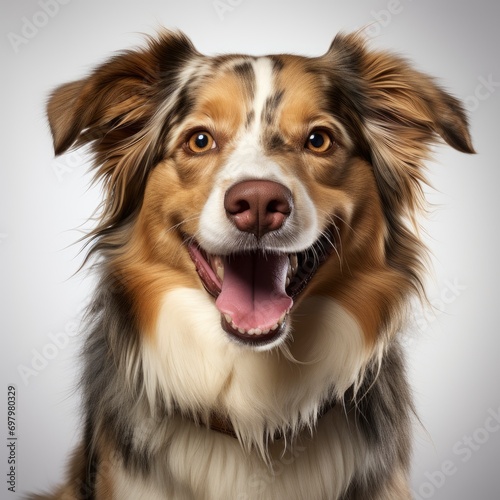 Cute Sitting Smiling Australian Shepherd Facing On White Background, Illustrations Images