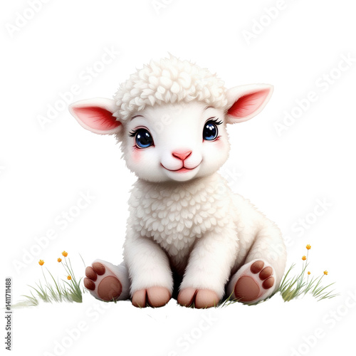 Cute Sleepy Lamb, Baby Lamb with Flowers, Cute Baby Animals Graphics, Cute Nursery Animals Clipart