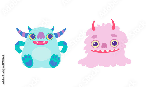 Cute Smiling Little Monsters Set Cartoon Vector Illustration
