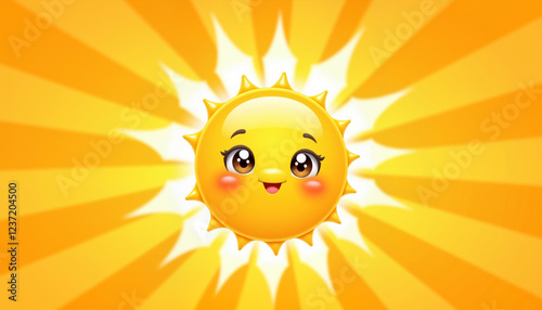 Cute smiling sun radiating warmth and joy, cheerful illustration