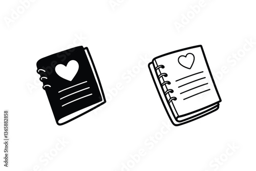 Cute Spiral Notebooks, Heart Design, Black and White, Journal, Diary, Love, Doodle, Sketch, Illustrate