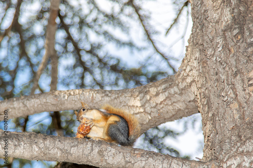 cute squirrel on tree branch