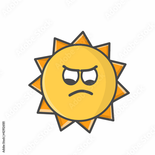 Cute Sun Character Flat Cartoon Emoticon Vector Template Design Illustration