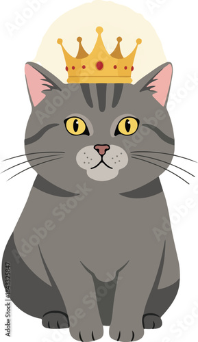 Cute Tabby Cat Wearing Golden Crown Isolated Vector Illustration