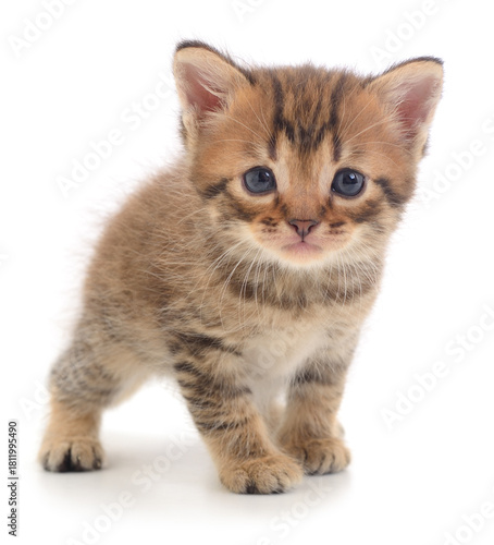 Cute tabby kitten isolated on white background