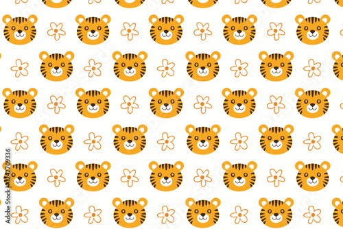 Cute tiger seamless pattern background illustration