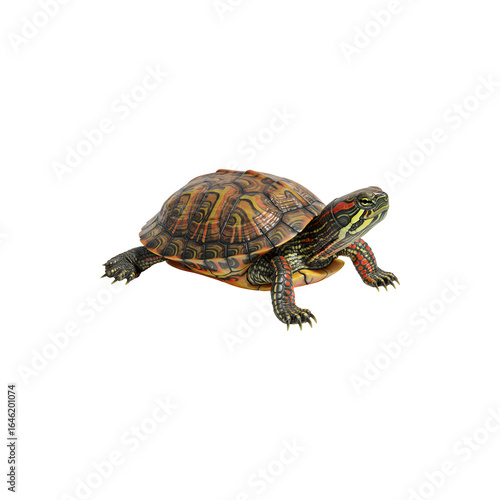 Cute tortoise wearing a party hat isolated on white background for funny animal and celebration concepts