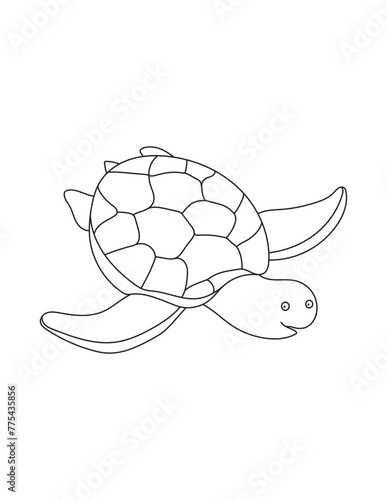 Cute Turtle Coloring Page for Print. Underwater animals and Ocean Life Creatures.