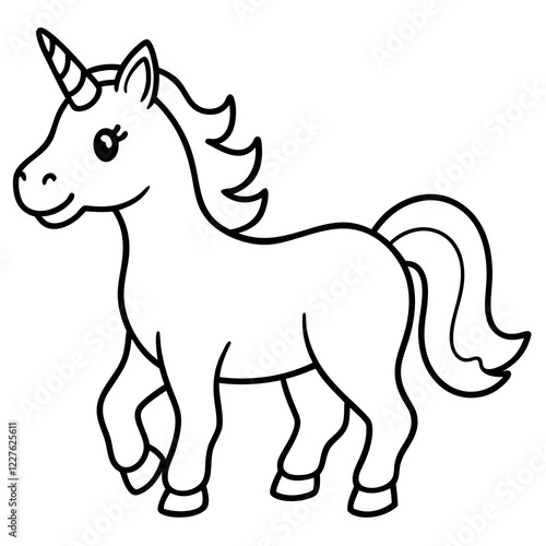 Cute Unicorn Silhouette Line Art Black Vector Carton Illustration