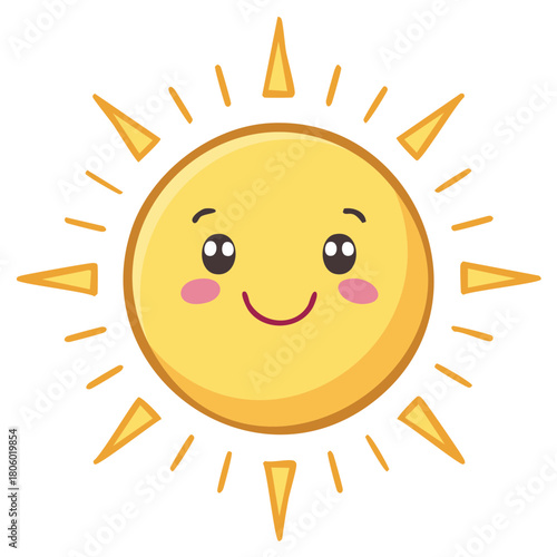 Cute Yellow Cartoon Sun Character with Face and Beams Illustration