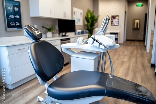 Cutting Edge Dental Practice Interior with Gleaming Chrome and Tranquil Earth Toned Accents