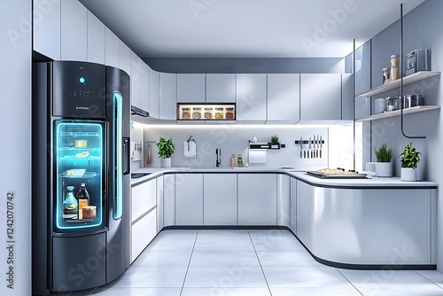 Cutting Edge Smart Kitchen with Voice Activated Automation and Energy Efficient Appliances for