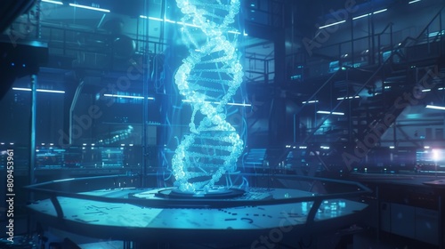 cutting-edge genetic engineering lab scene where scientists use quantum computing to modify genetic codes, in a cinematic style