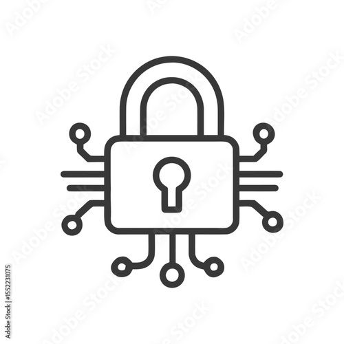Cyber Security Lock Icon with Circuit Board Design on White Background