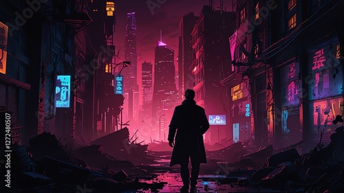 Cyberpunk city at night