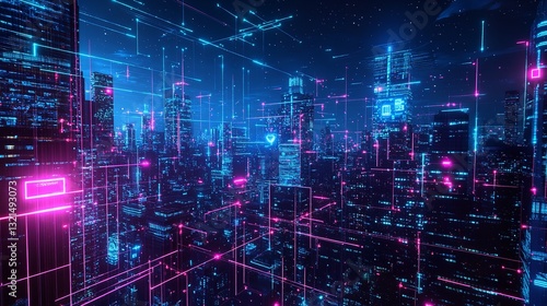 Cyberpunk Cityscape Neon Lights Digital Art Futuristic City Night Abstract Background Modern