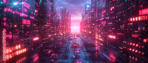 Cyberpunk education with digital tutors and neon-lit learning aids, Cyberpunk, Neon, 3D Render
