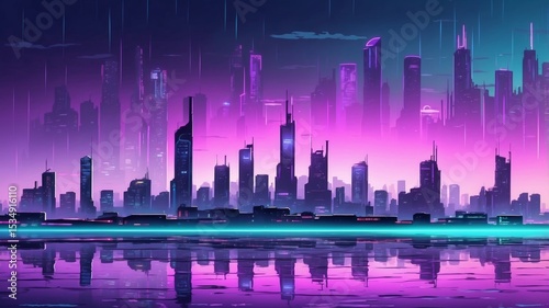 Cyberpunk Megacity Skyline: Neon, Panoramic, Rainy Dusk