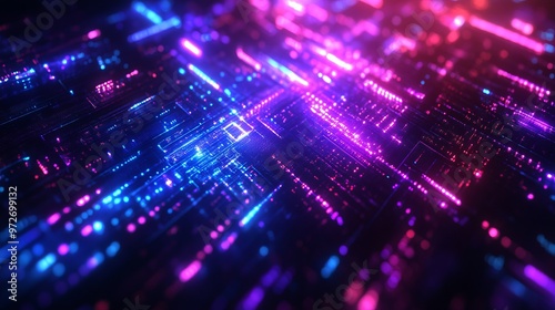Cyberpunk reverie: Sci-fi inspired abstract with blue and purple neon light shapes on a black background