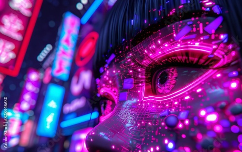 Cyberpunk Woman's Eye with Neon Lights.