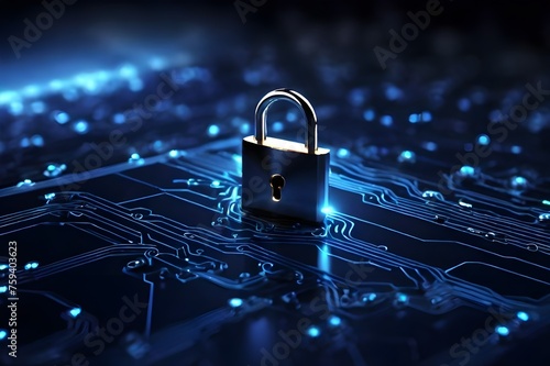 Cybersecurity and privacy concepts to protect data. Lock icon and internet network security technology. Virtual screen interfaces. National Cyber Security Awareness Month October