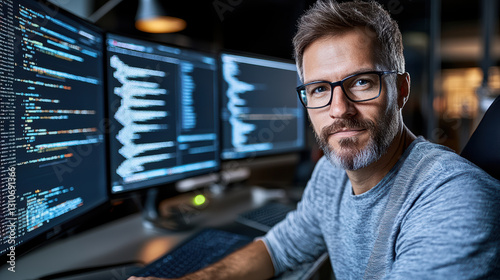 cybersecurity coder working on penetration testing in modern office